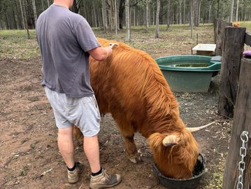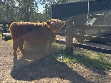 Windsor (Winnie) of Hunter Highlands (unregistered) is our only boy on the property currently and we need to make room for our girls for when they have calves. He is a beautiful boy who loves snacks and wont say no to being combed or scratched.